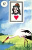 O jogo online tem as 36 cartas do Baralho cigano disponíveis, e você escolhe uma carta para o amor e outra para as finanças.