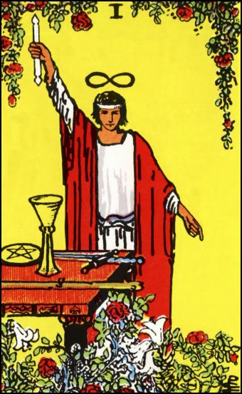 Essa imagem não é por acaso. Ela diz que O Mago é um canal entre o que existe no plano das ideias e o que pode ser concretizado no mundo real.